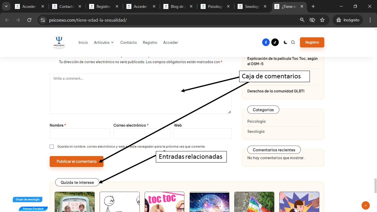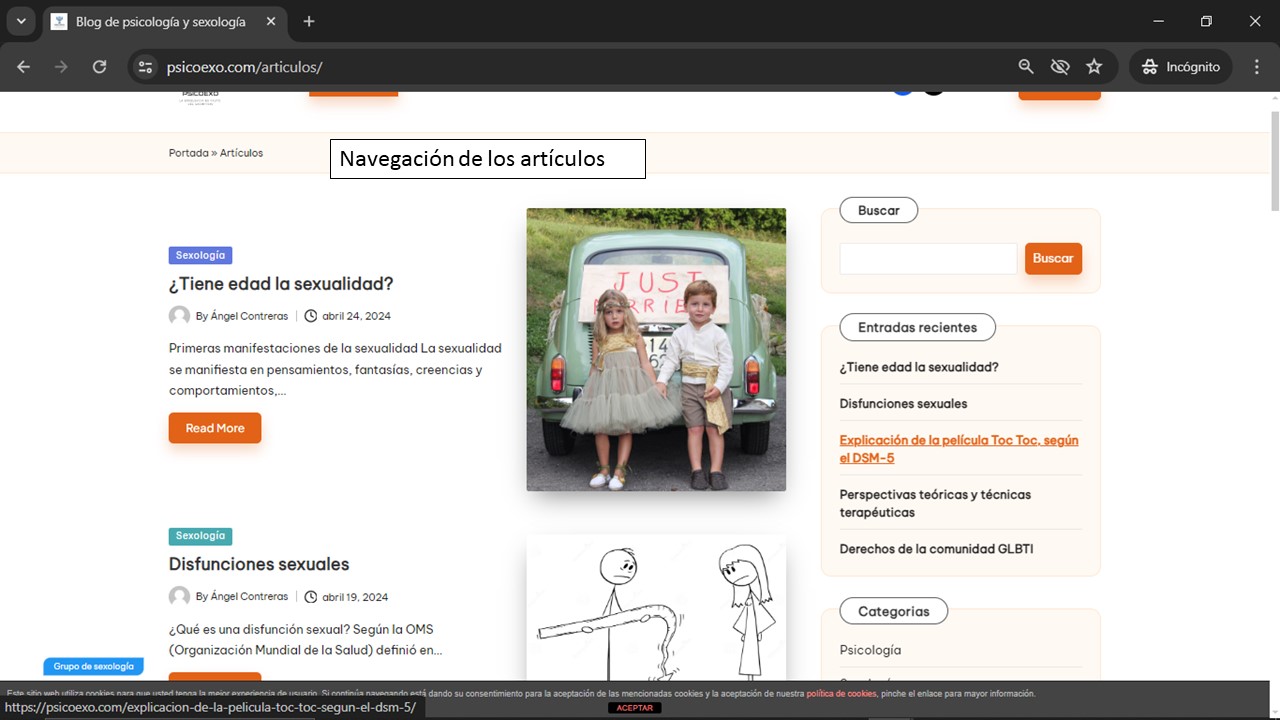 Nuestros artículos están repartidos en dos categorías; Psicología y Sexología.